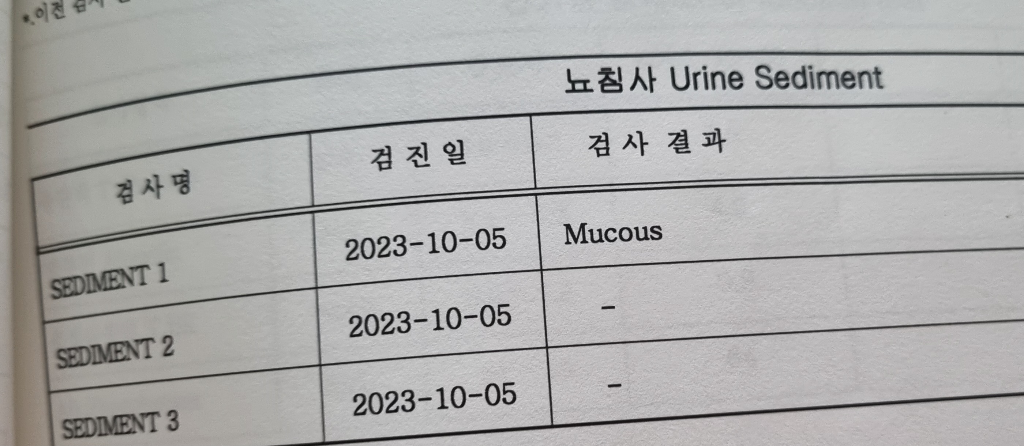 소변을 봤을 때 약간 점액질 양상으로 보인다는 의미입니다. 2, 3번은 다른 이상은 없다는 의미이구요. 주로 방광염과 같은 염증이 있을 때 동반되는 소견입니다. 만약 다른 소변 검사에서도 방광염이 의심되고 현재 방광염 증상이 있다면 치료가 필요하다고 판단해야 합니다.