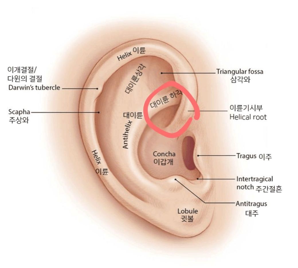 새로 산 이어폰을 낀 후로 저 대이륜 하각쪽 안쪽 부분이 너무 아픈데 오른쪽은 괜찮은데 왼쪽만 통증이 있어서 누르면 아파요 이어폰 꼈다고 아픈건지 냅두면 나아질까요?
