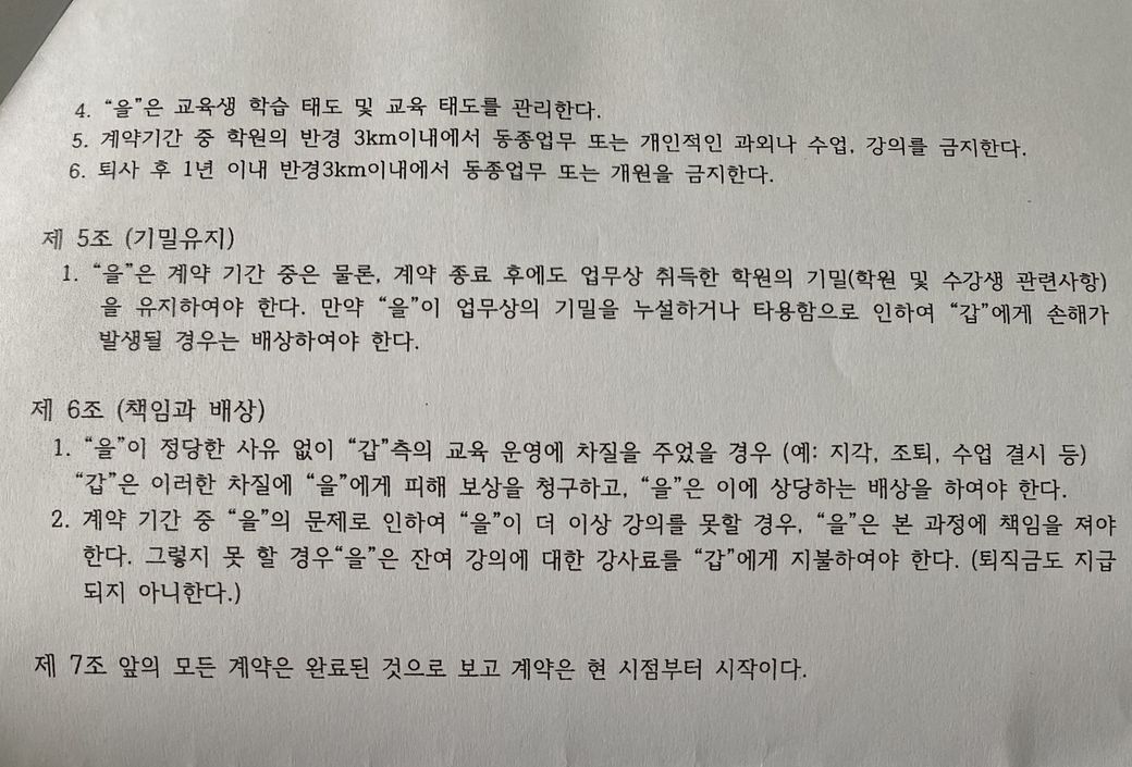 사실 공부방이나 교습소 오픈도 가까운 미래에 개원할 것을 생각 중이라 저 계약서에 관해 법적인 책임이나 효력에 관해 조언을 구하고 싶습니다.