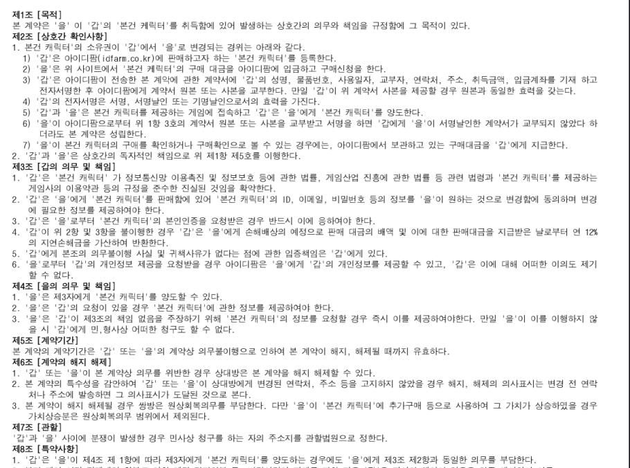 이건 그당시 그분과 계정구매사이트에서 썻던 계약서의 내용일부입니다