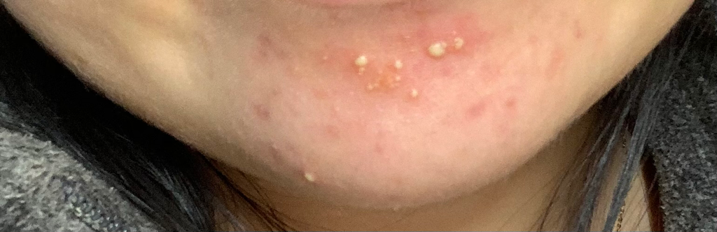 현재의 모습 역시 여드름 혹은 모낭염의 증상으로 보이며 두가지 모두 비슷한 세균에
