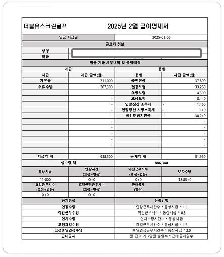 아래는 2월달 근무했을 시 급여명세서입니다. (18시간 * 4주 = 72시간)
