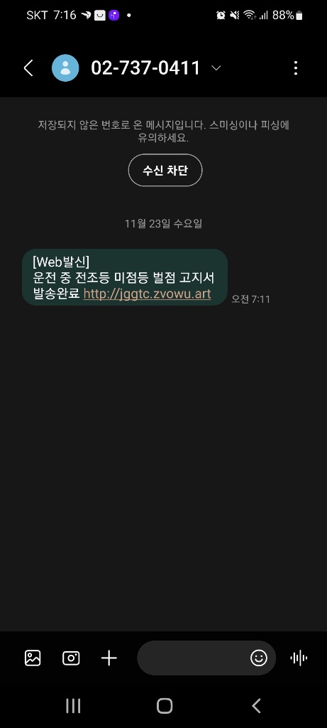 안녕하세요. 포 드입니다.휴대폰 문자로 오는 모든 링크는 안 누르고 바로 차단해요 통신사 ,은행에서 오는 문자도 한번은 확인해요 하지만 그래도 링크는 절대 안 눌러요