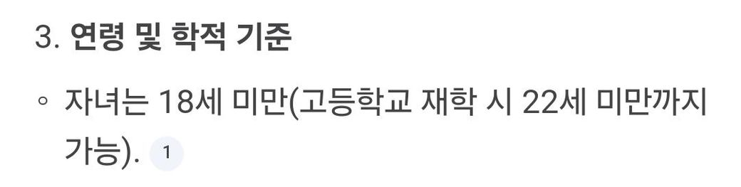 자녀는 18세 미만(고등학교 재학 시 22세 미만까지 가능)