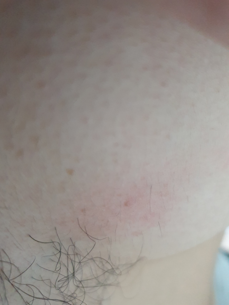 현재 사진상만으로 정확한 감별은 어렵습니다. 일반적으로 바이러스 감염 후에 피부 발진이 발생할 수 있으나 다양한 발진 원인이 있으므로 정확한 진단을 위해 상급병원 피부과에 내원하시어 진료를 받아보시는 것이 좋겠습니다.