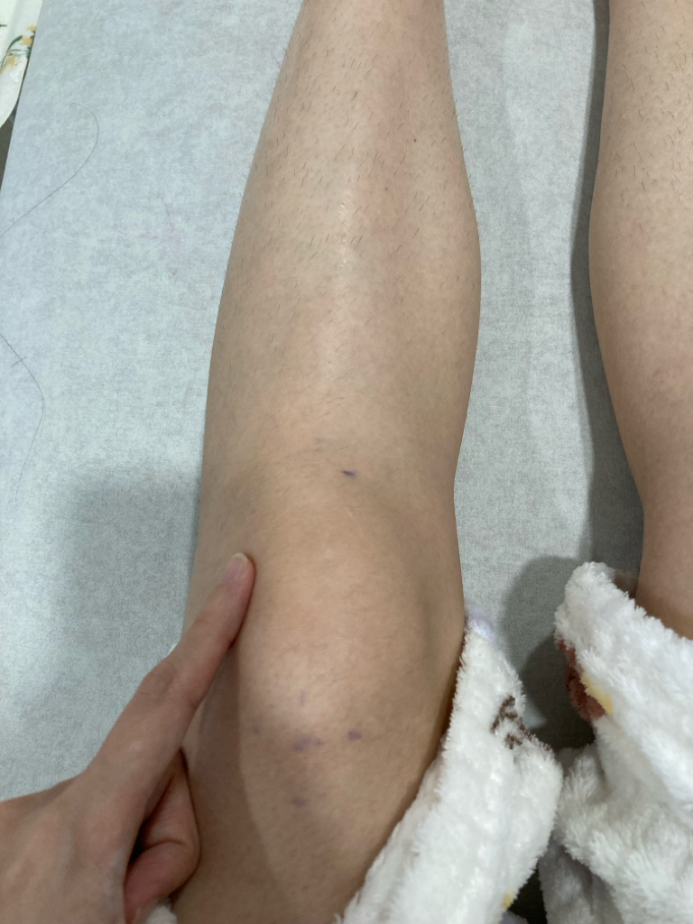 사진상으로 손가락이 가리키는 부위는 무릎의 외측 부분으로 보이며, 여기에 통증이 있다면 외측 콜라테랄 인대(LCL) 손상 가능성을 고려해 볼 수 있습니다. LCL은 무릎 관절의 외측을 안정화하는 역할을 하며, 무릎이 내측으로 비정상적으로 꺾이는 부상에 의해 손상될 수 있습니다. 통증이 있는 정확한 위치, 붓기, 그리고 MRI 결과는 손상의 범위와 정도를 결정하는 데 중요한 정보가 됩니다.