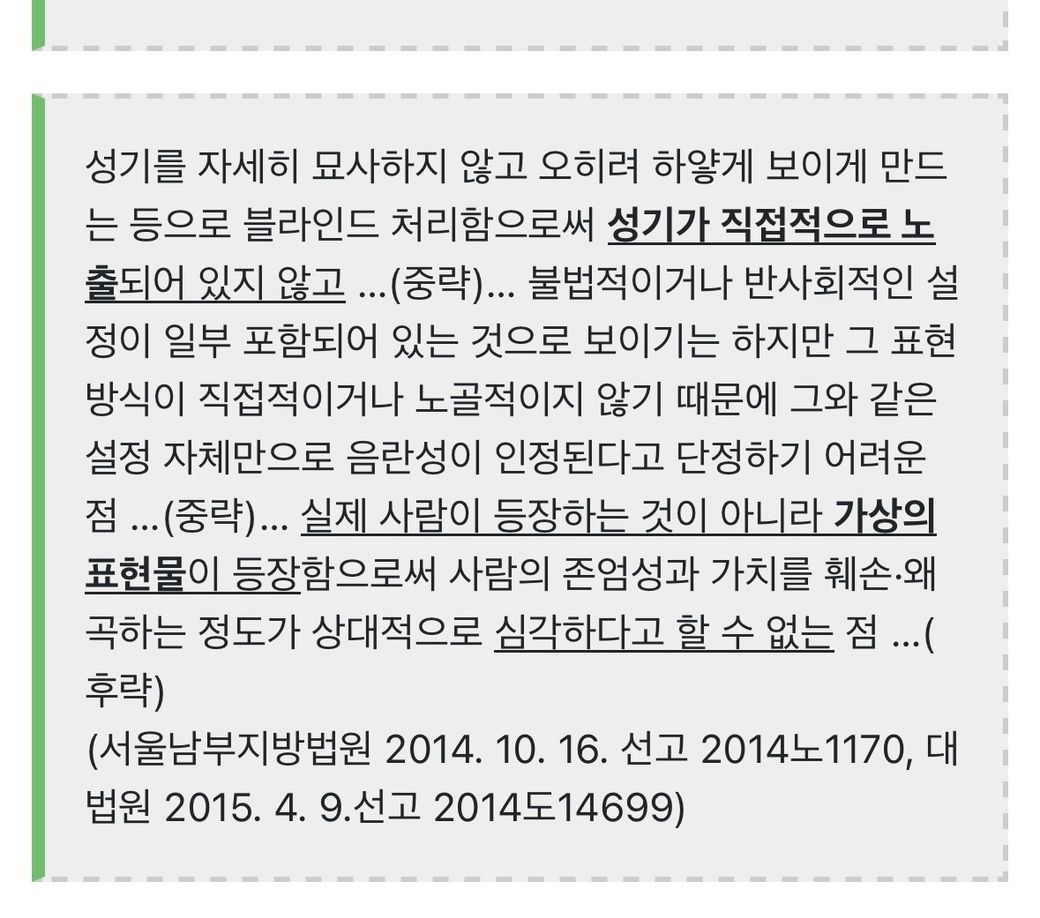 음란물이란 단순히 저속하거나 문란한 느낌을 준 다는 정도를 넘어 존중돼야 할 인격을 갖춘 존재인 사람의 존엄성을 심각하게 훼손했다고 평가할 수 있을 정도로 노골적인 방법으로 성적 부위 및 행위를 적나라하게 표현한 것을 음란물이라고 한다고 하는데 한 음란영상의 장면을 캡쳐하여 성행위 모습,중요 부위등을 블라인드 처리나 편집으로 가렸을 때 음란성이 사라질텐데 영상 장면을 캡쳐하여 성행위,중요부위가 편집으로 가려진 사진의 경우에는 음란물이라 판단 하기 어려울 수 있죠?