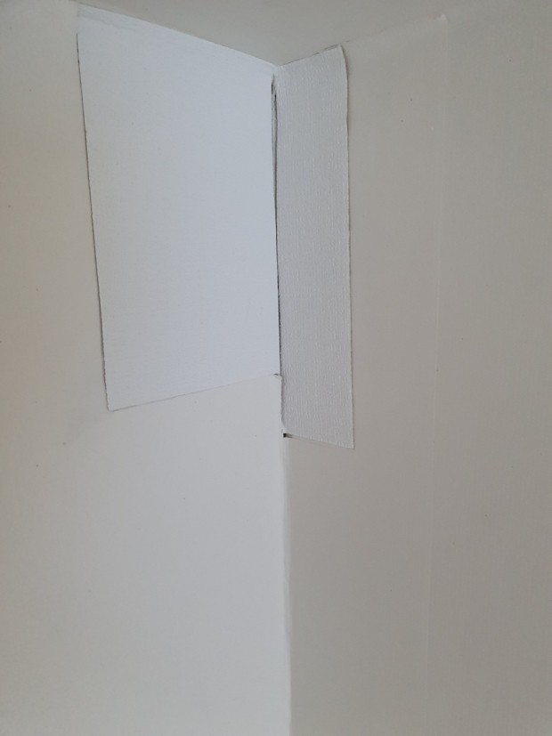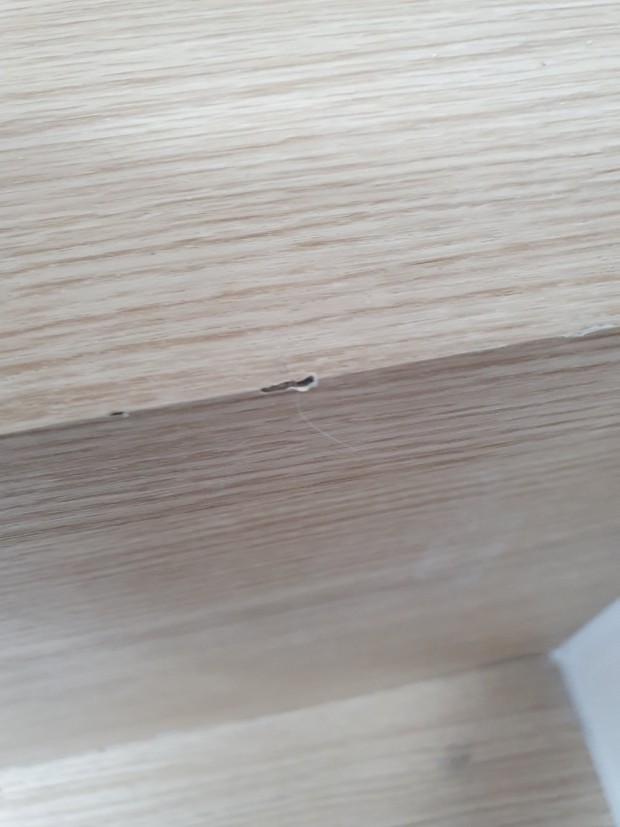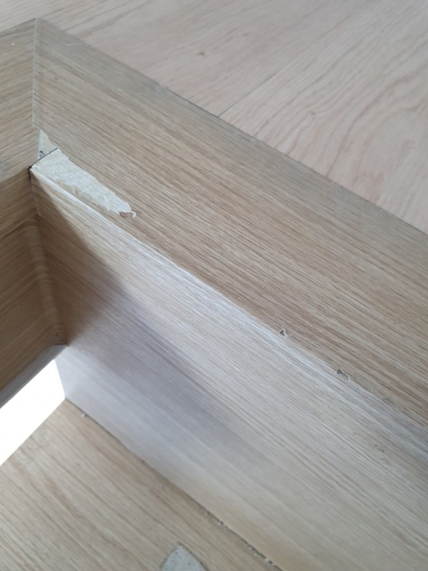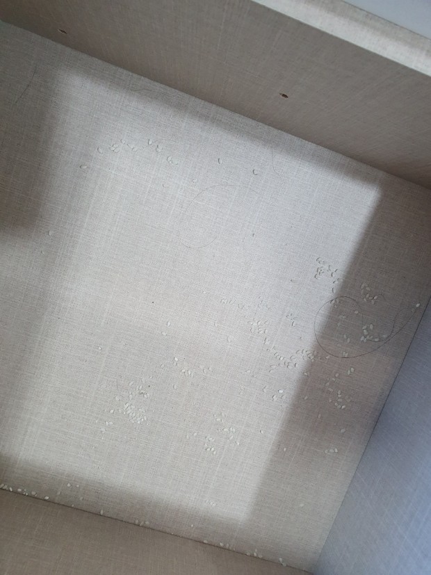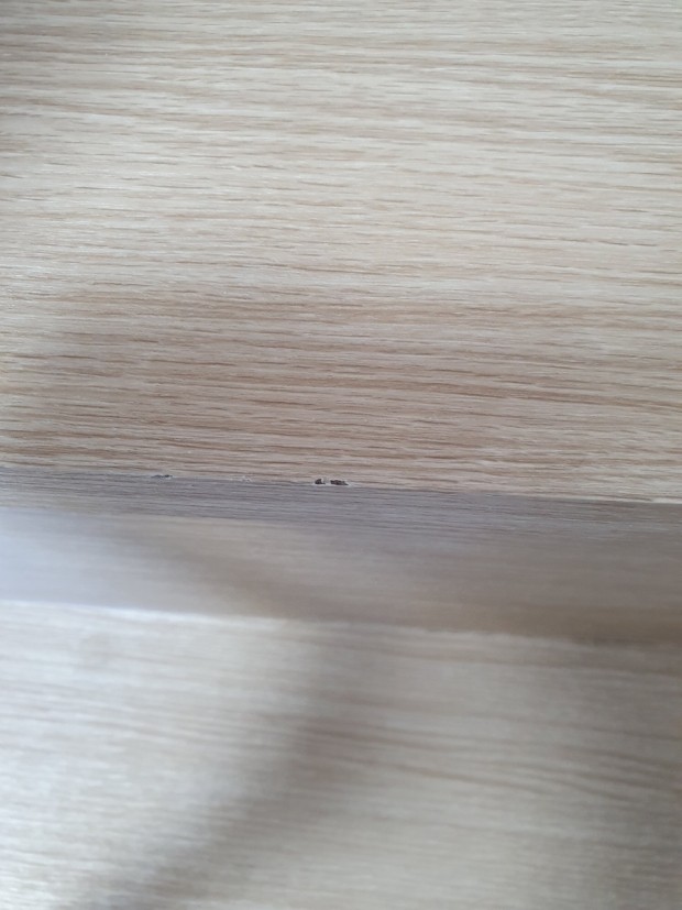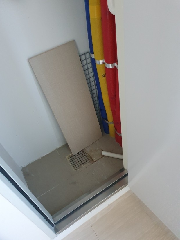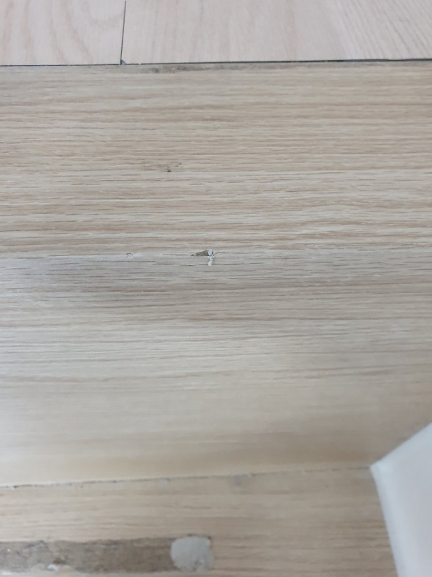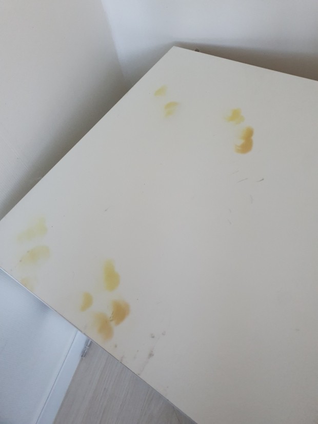 그 중 흰색 시트지를 붙인 부분은 초기에 그 부분에 젖어 행주로 닦던 중 찢어진 곳입니다. 그리고 다른 조금 크게 범위가 찢어진 부분은 자연스럽게 부풀어 오르면서 터져서 찢어진 부분입니다.