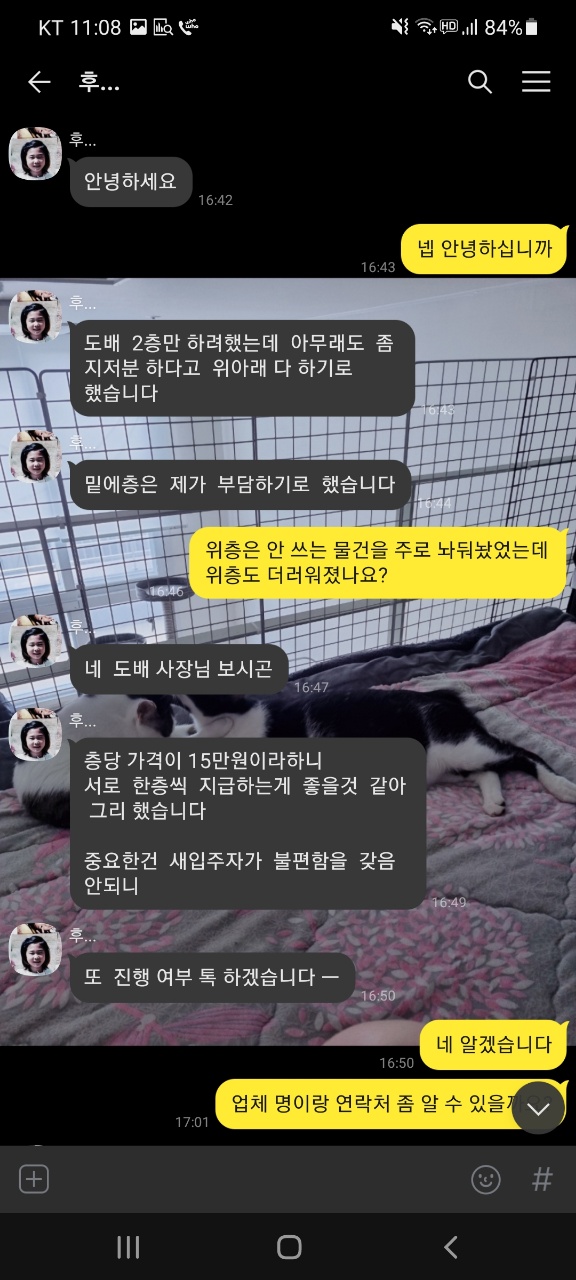 집 주인 분께서는 초기 15만원을 요구하셨고, 이후 업체에서 얼룩이 보여 전체 도배를 해야 한다고 하였습니다. 하지만 아래층은 본인이 하고 위층 부분을 부담하라고 하였는데 제가 도배를 물어내야 하는지에 대해 의구심이 들어 문의하게 되었습니다.
