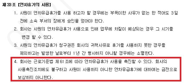미사용연차 미지급에 대한 문의드립니다.