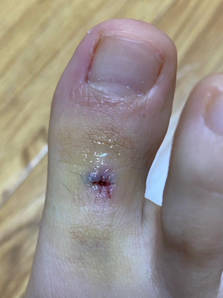 11/9 발가락에 있는 점 조직검사 후 2바늘 봉합했습니다. 11/16 봉합사 제거 후 귀가했는데 상처부분에 피가 나고 약간 벌어진듯 한 느낌이 있었는데(첫번째 사진) 베타딘 소독만 했습니다. 상처가 잘 아물고 있는지 모르겠습니다.
