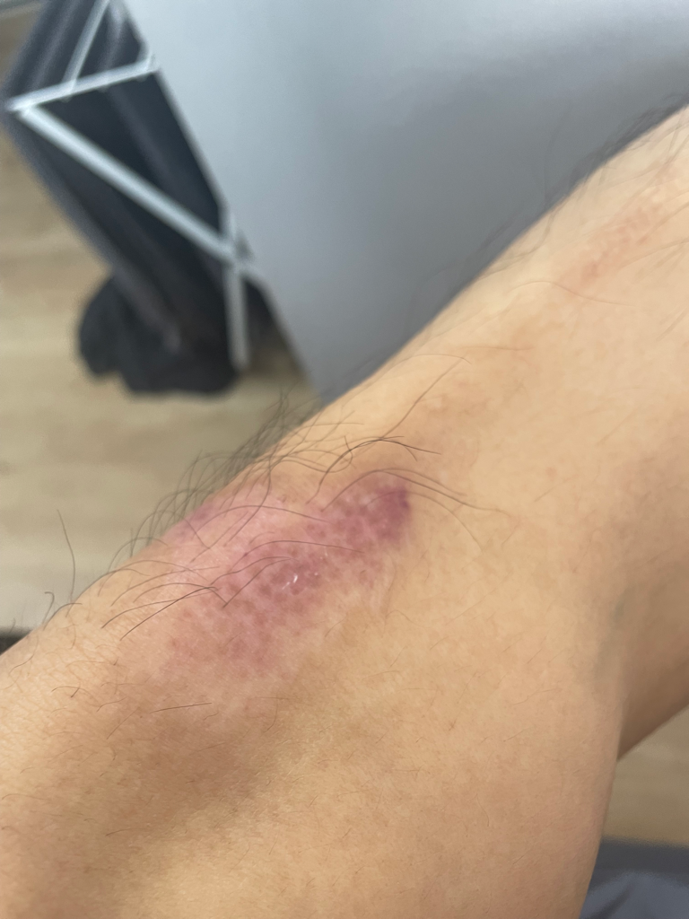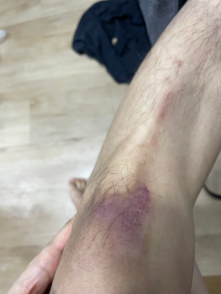 안녕하세요 선생님들 1월31일에 축구하다가 넘어져서 생긴 찰과상입니다. 현재 다친지 한달이 넘었는데 이 정도면 잘 나은건가요?? 시간이 꽤 지났음에도 보라색이라 질문드립니다... 그리고 중간에 일어난건 궤양은 아니겠죠?? 건조해서 일어난거일까요??