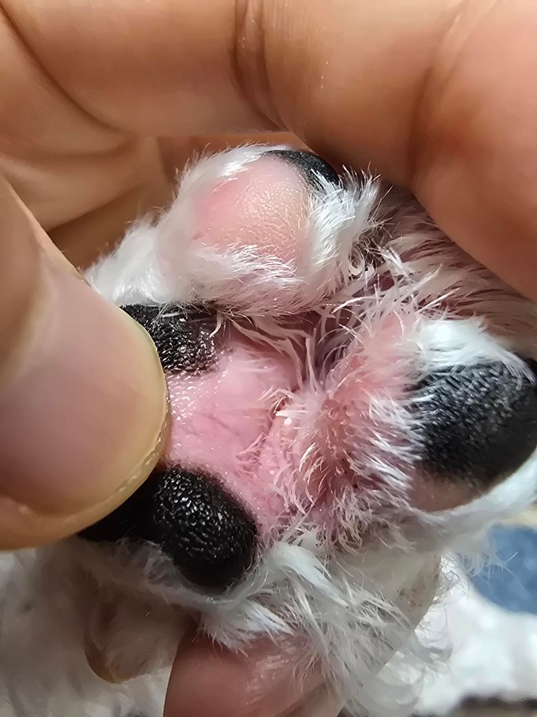 강아지 발사이에 조그마한 종기?물집이생겼는데 뭘까요? 걷는데는문제없고 발사이 조만하고 우둘투둘합니다. 커지는것같진않습니다.병원가야할까요