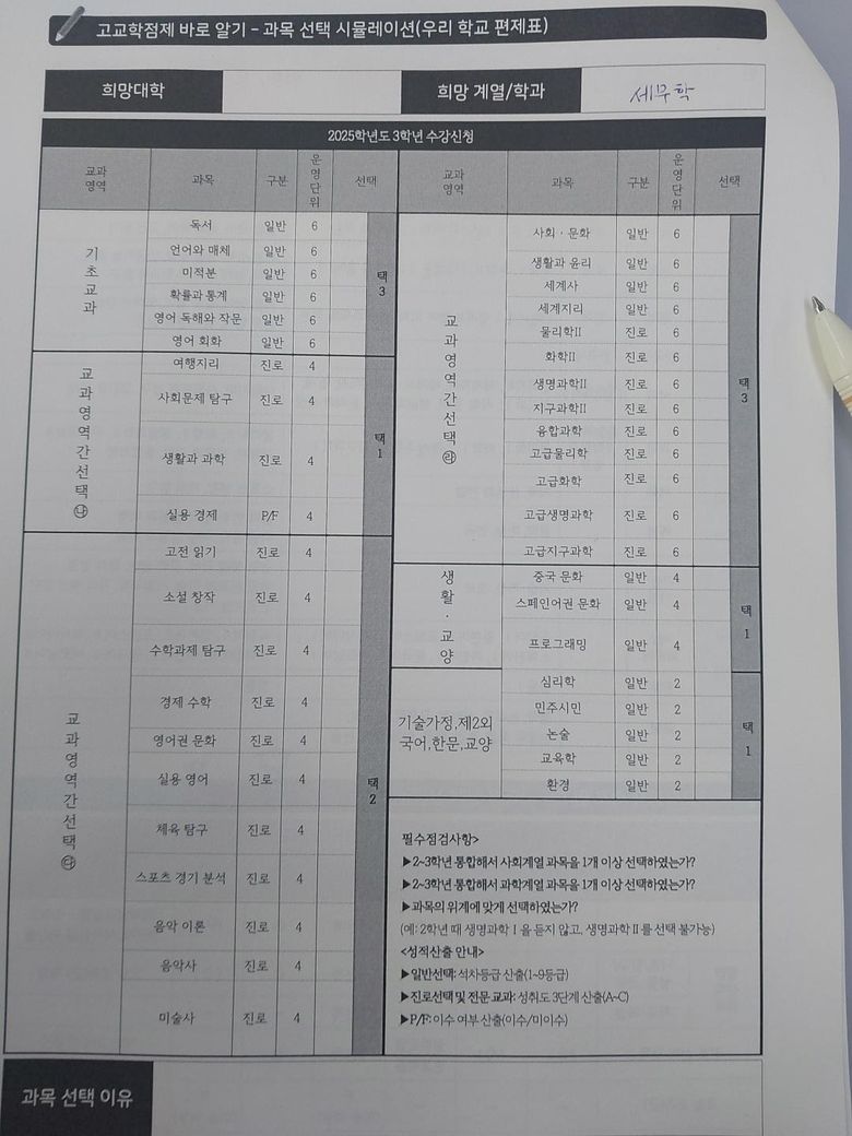 세무사가 꿈인 07년생, 현재 고2 입니다. 3학년 수강 신청을 해야하는데 세무사분들이나 잘 아시는분들의 의견을 듣고 하는게 좋을것같아서요. 뭐뭐 고르는게 좋을까요?