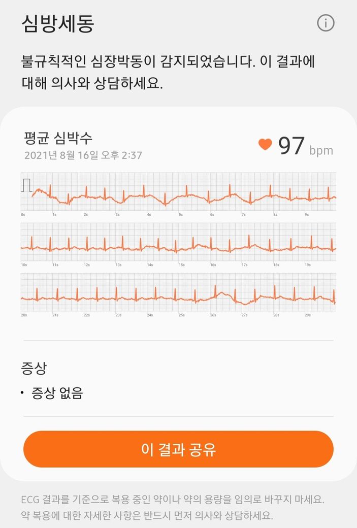 평소처럼 아침 점심 저녁으로 재는데 평소에는 동리듬만뜨다가 점심먹고 재보니 심방세동이 떠서 깜짝놀랐습니다. 다시 바로재봤는데 그땐 또 동리듬이 뜨네요 심박수는 왜이리높은지도 궁금하네요