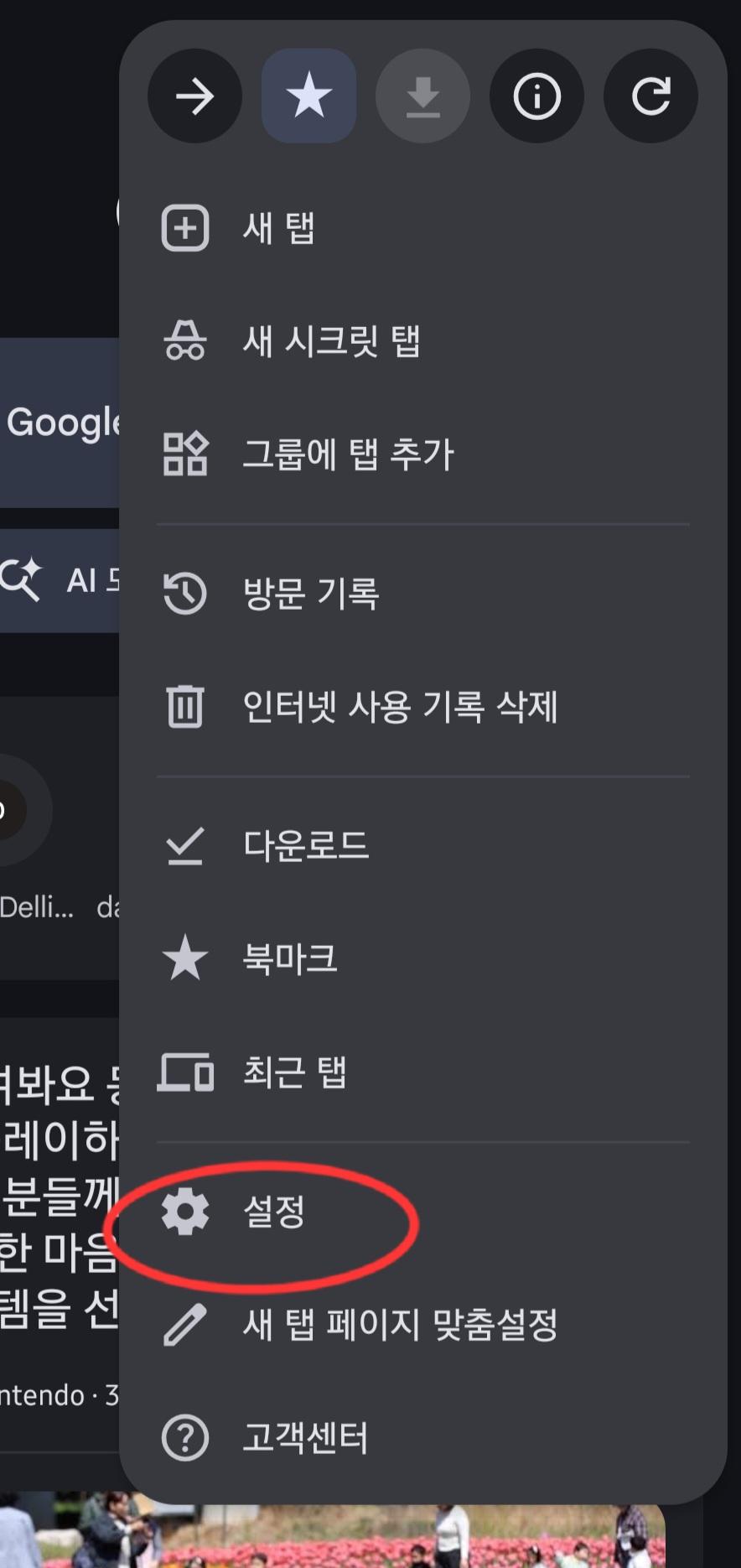 크롬 어플을 키셔서 사진의 순서대로 들어가 활성화를 끄시면 될것같네요