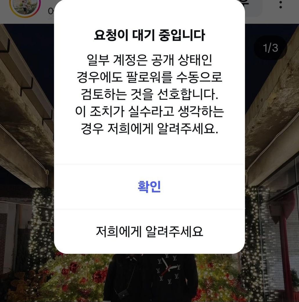 또 팔로우 할려는데 갑자기 팔로우 수동 검토 중이라고 떠요??