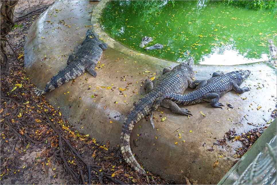 태국에서 가장 큰 파충류이자 상위 포식자는 샴악어였잖아요. 나중에는 사람들이 가죽을 얻으려고 샴악어를 사냥하고 가축처럼 만들려고 강제로 농장에 가둬서 키우는 바람에 야생에서 줄어들자 국제적 멸종위기 동물이 되었죠.