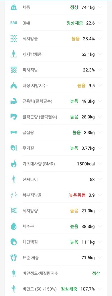 키 181cm, 몸무게 74kg으로 정상이지만 복부지방이 과다하다는 진단이 나왔습니다.