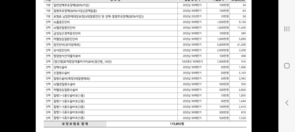 2. 암진단비는 5천으로 괜찮은거 같은데.. 그외에 뇌혈관, 뇌졸증, 허혈성심질환, 급성심근경색등.. 진단금이 너무 작은거 같습니다.