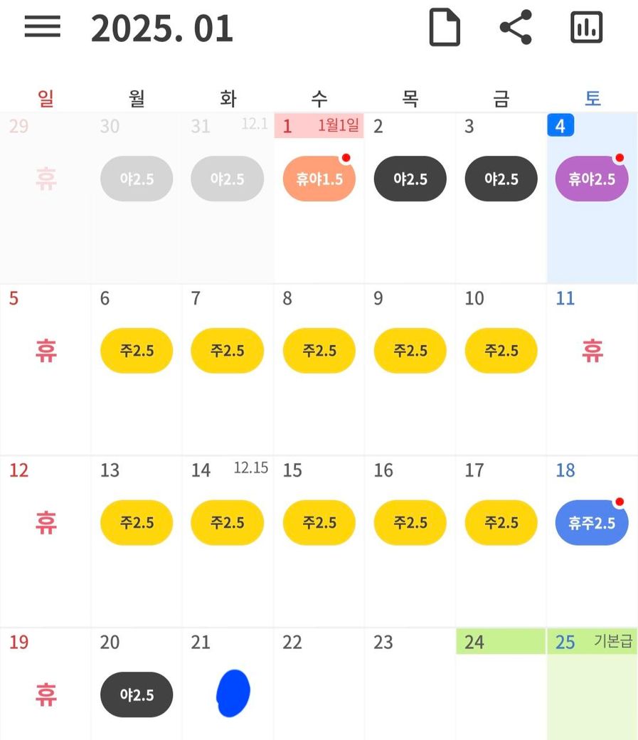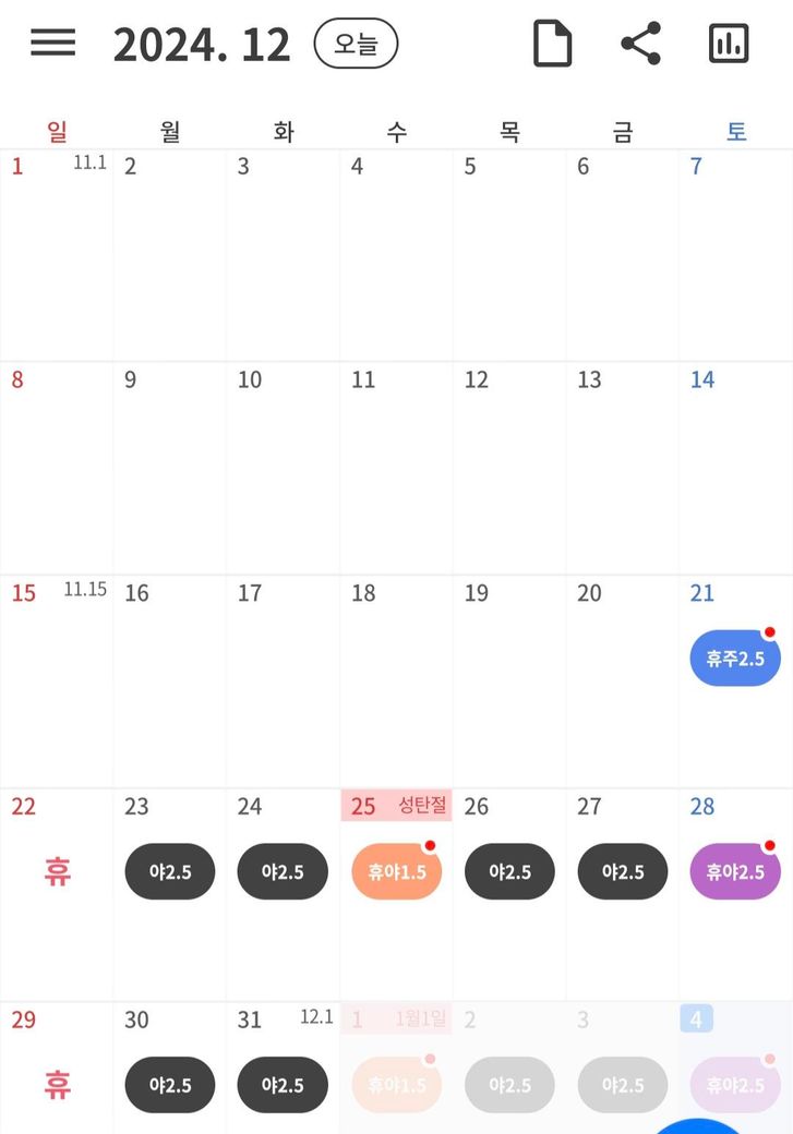 한주에 월~토 일하는데 일이 있으면 토욜 쉽니다. 첨부파일 사진 보고 12월21일~1월~20일 근무 예정표 보고 예상 월급 계산 가능하신분 부탁드립니다.