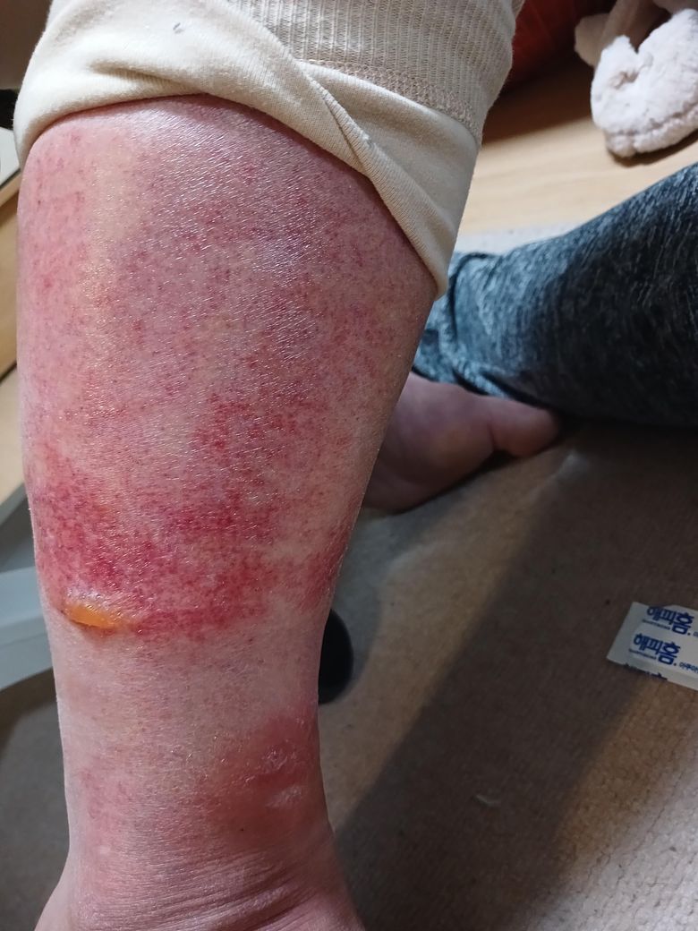다리 물집이 너무 심해서, 걱정되는데 대상포진인가요? 물집 터트리면 안좋으려나요