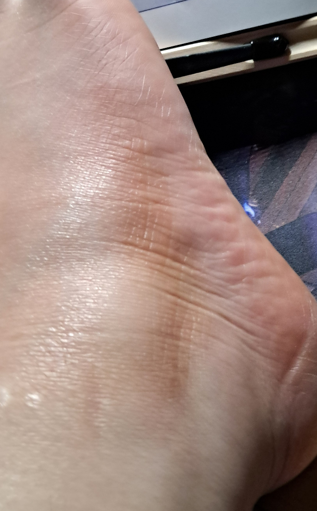 한쪽 발 바깥쪽 피부가 각질이 있는 것처럼 두껍고
