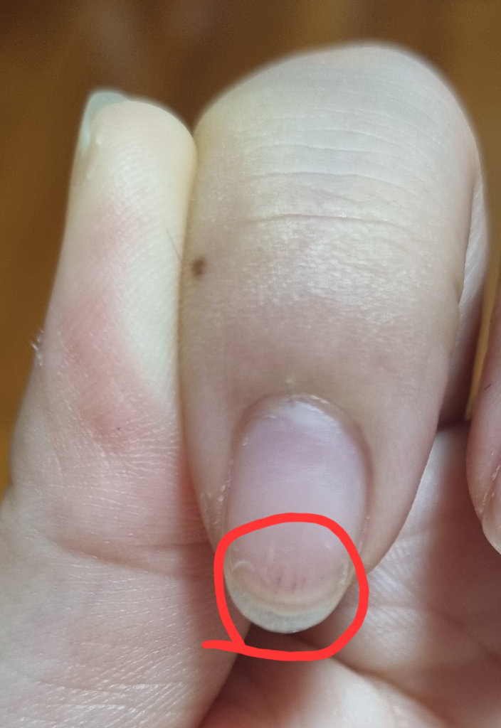 질문자님의 증세로 보았을 때 체내의 멜라닌 색소가 해당부위에 증가하여 생긴 생리적 증상일 가능성이 있어 질환이 의심되진 않으나 만일 손톱의 함몰이나 해당 부위가 선형으로 손톱안쪽까지 커진다면 간혹 흑색종일 가능성이 있으므로 해당 증상 발생 시 피부과에 내원하셔서 의사의 진료를 받아보시기 바랍니다.