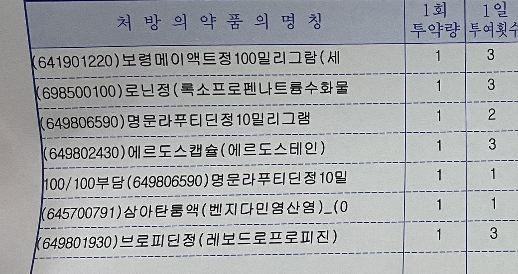 3. 밑에 처방전을 이미 드셨으면 4알 처방전 약중 파모티딘정이랑 아세크릴정만 빼고 드시면 됩니다.