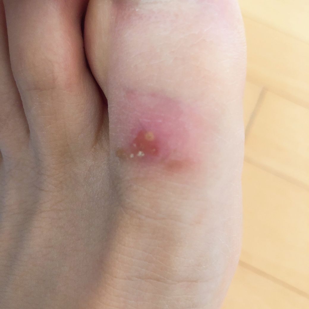 엄지발가락에 상처가 낫엇는데 그걸 그냥 나뒀습니다. 그러고 며칠이 지낫는데 신발을 신고 걸을 때 엄지발가락이 다일 때마다 아파서 보니, 상태가 이렇게 돼 있었습니다. 단순 피부 질환인가요??