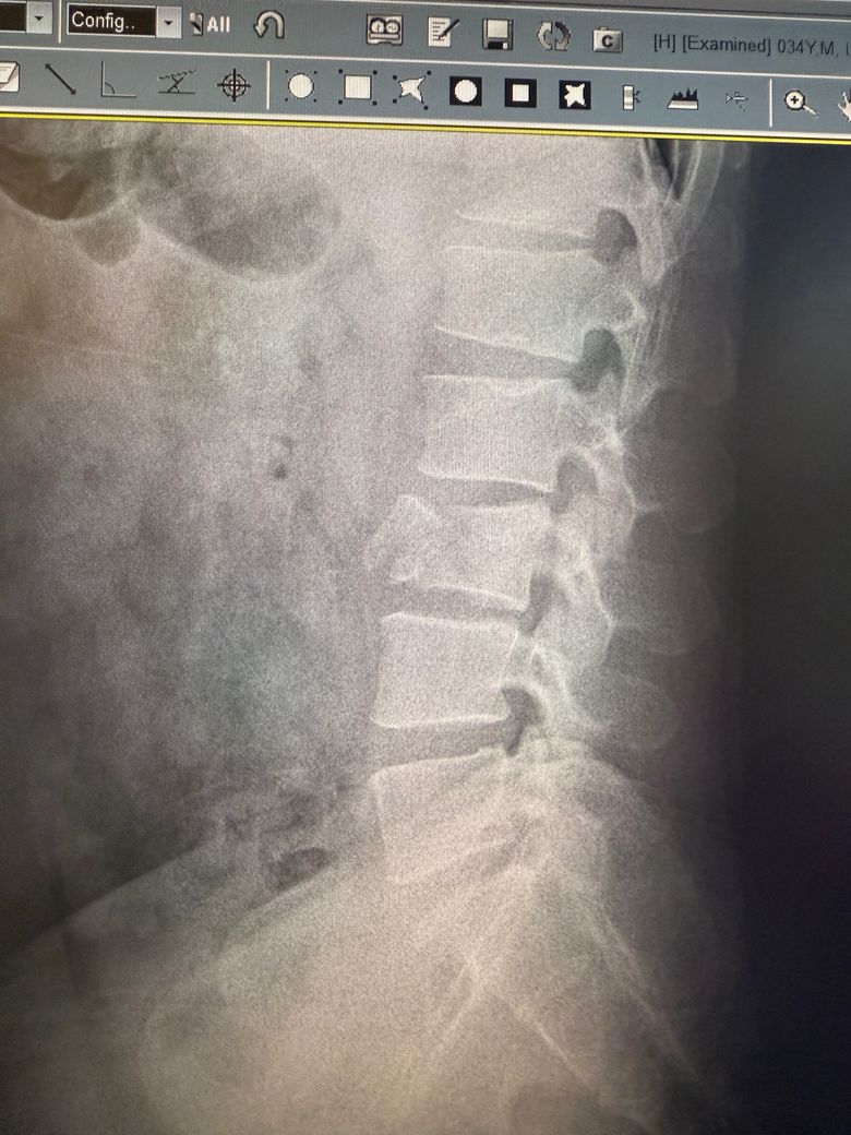 사진상 정확한 상태를 확인하기는 어려우나 척추뼈에 골절이 있는 상태로 보이며 일단 해당 병원에서 비수술적인 치료를 진행해보자고 하셨는데 불안한 상황이라면 다른 병원에 방문하시어 다른 전문의 선생님의 소견을 들어보시는 것도 좋을 것으로 생각됩니다.