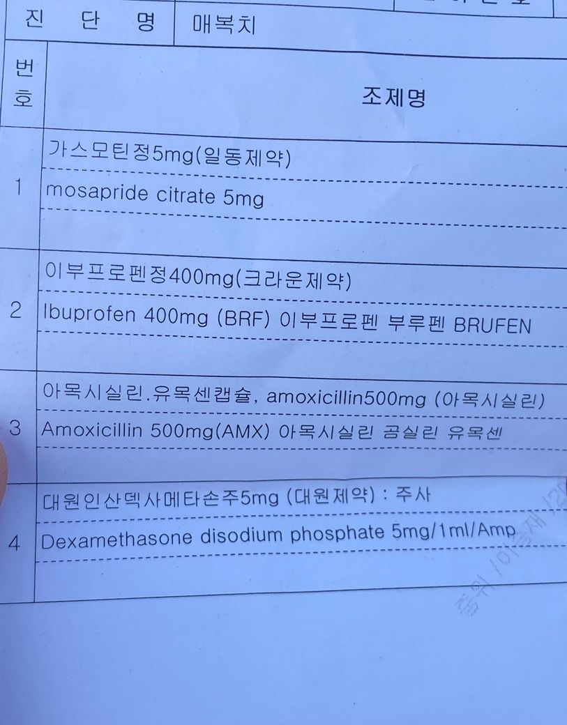 매복 사랑니 발치 후 약 복용