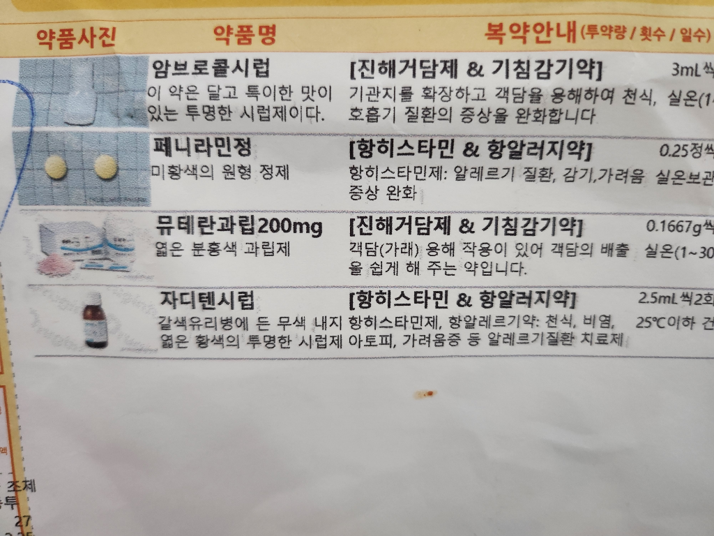 현재 약을 이렇게 처방받아 왔는데, 코가 더 심하게 나오는 느낌입니다