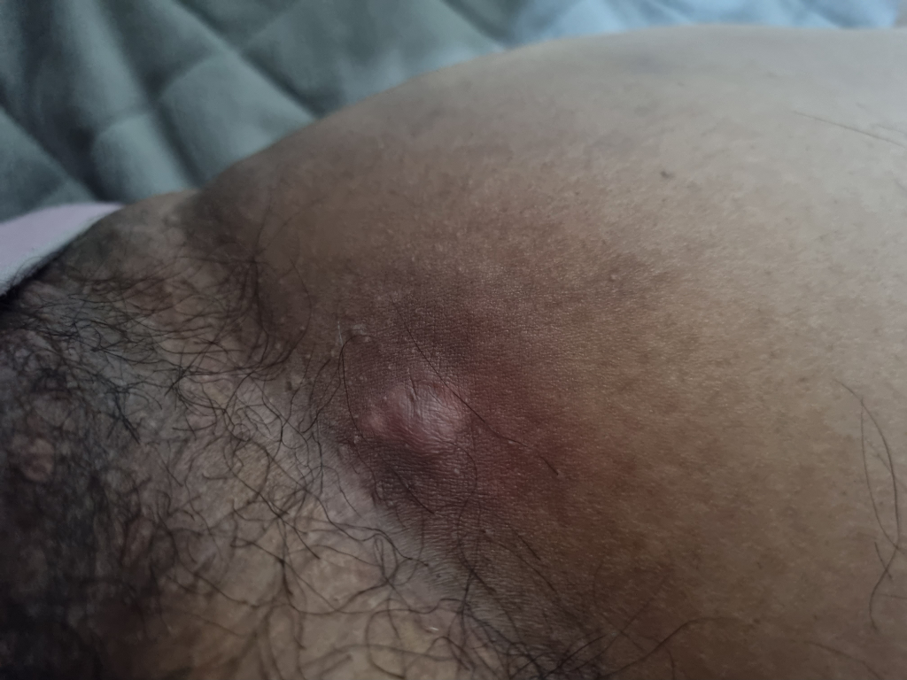 종기의 가능성이 높아 보입니다. 사진만으로는 제한적으로 피부과나 산부인과적 진찰을 받아 보시기 바랍니다.