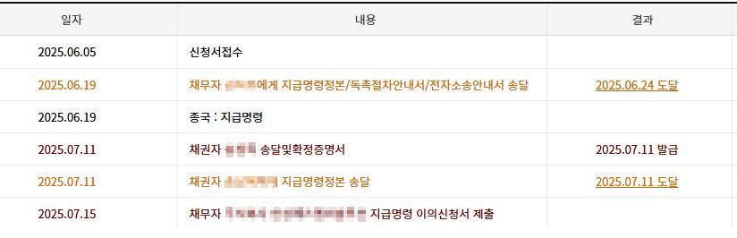 6/19 지급명령이 송달되었고 이의신청이 없어 7/11일 확정이 되었습니다.