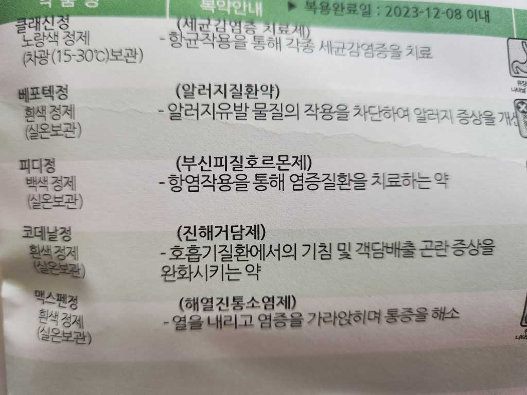 감기약은 다 먹어야하기때문에 알러지약 중에 메드론정, 베타리온정은 빼고 드셔야해요.