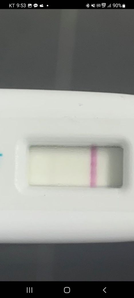 현재 C에 줄이 분명한건 검사기가 정상적으로 작동한다는 뜻이며 C에는 유의미한 선이 사진상에는 보이지 않습니다. 하지만 위음성의 가능성이 있으므로 다시 검사하거나 혈액 검사를 통해 정확한 호르몬 수치를 확인해 보시는 것이 좋겠습니다.