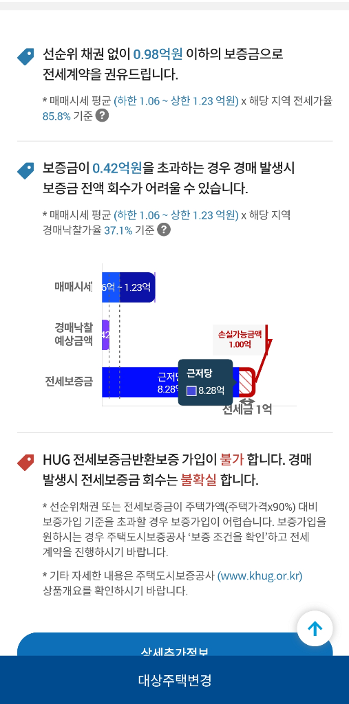 건물 공시가격대비 근저당권설정액이 많으면 전세대출 및 보증보험 가입이 거절 될 수 있습니다.