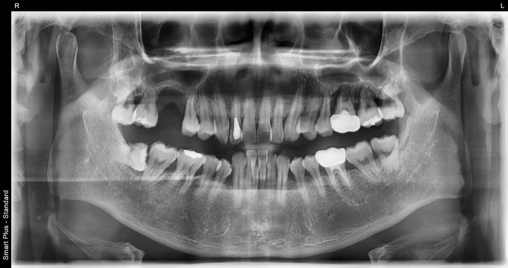 일단, 전반적으로 잇몸뼈 흡수가 심해서 임플란트를 하고자 하는 경우 상악동과 관련하여 거상술, 뼈이식술이 필수적으로 필요한 케이스입니다.