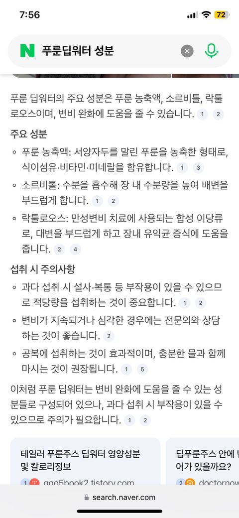 테일러 푸룬 딥워터의 경우 소르비톨과 락툴로오스 성분 때문에 네이버를 보니 설사 성분으로 먹으면 된다 안된다 의견이 분분하더라구요 ..