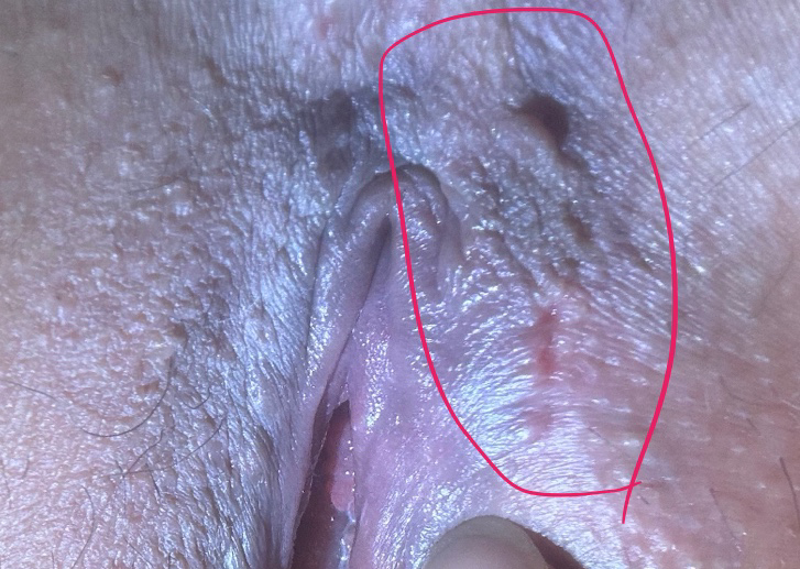 음부가 따갑고 피부병변이 있는 것 같아 걱정스러우시군요. 열상이 있는 것으로 보입니다. 따가움을 유발한 원인으로 보이니 연고를 발라주시기 바라며 그 외 다른 문제는 보이지 않는 것 같습니다. 걱정되신다면 가까운 산부인과에서 확인받아보실수 있겠으니 방문을 고려해보시기 바랍니다.