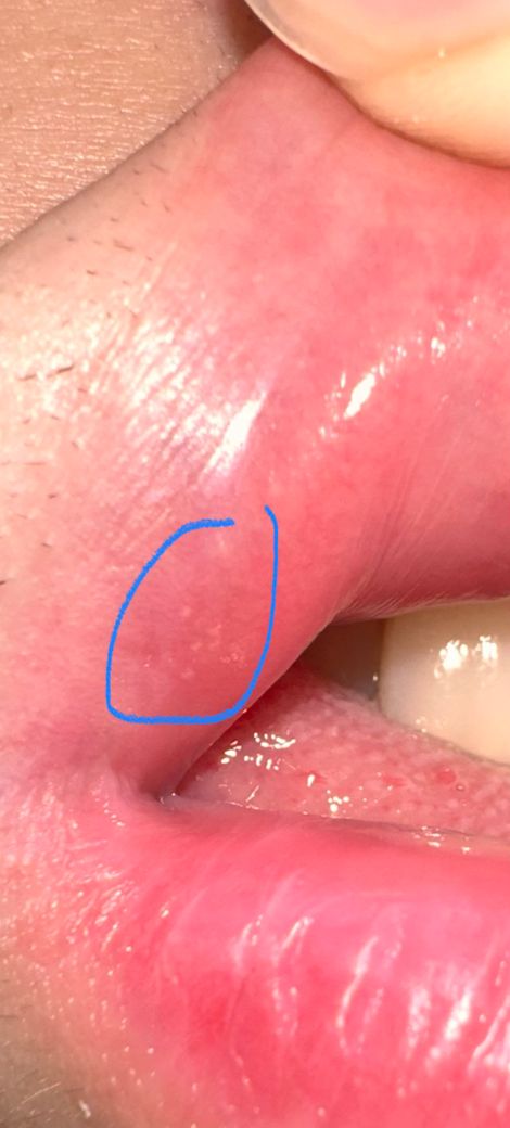 https://www.a-ha.io/questions/40b6b133aa6f0bd984d89e2dcf8472a5 다른 아하 질문을 보면 저보다는 크시지만 유사하다고 생각이 드는데..( 저정도로 튀어나와있지는 않고 그냥 입술 안에 있고 주변이 헐거나 통증도 없습니다.)