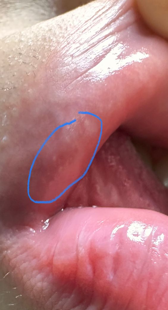 해당 부위까지는 확인 못하신 것 같습니다 (윗 입술을 까야지 보이는 부위라서요)