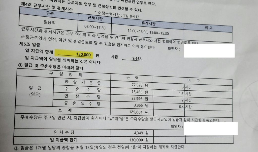 총 일 지급액 13만원입니다