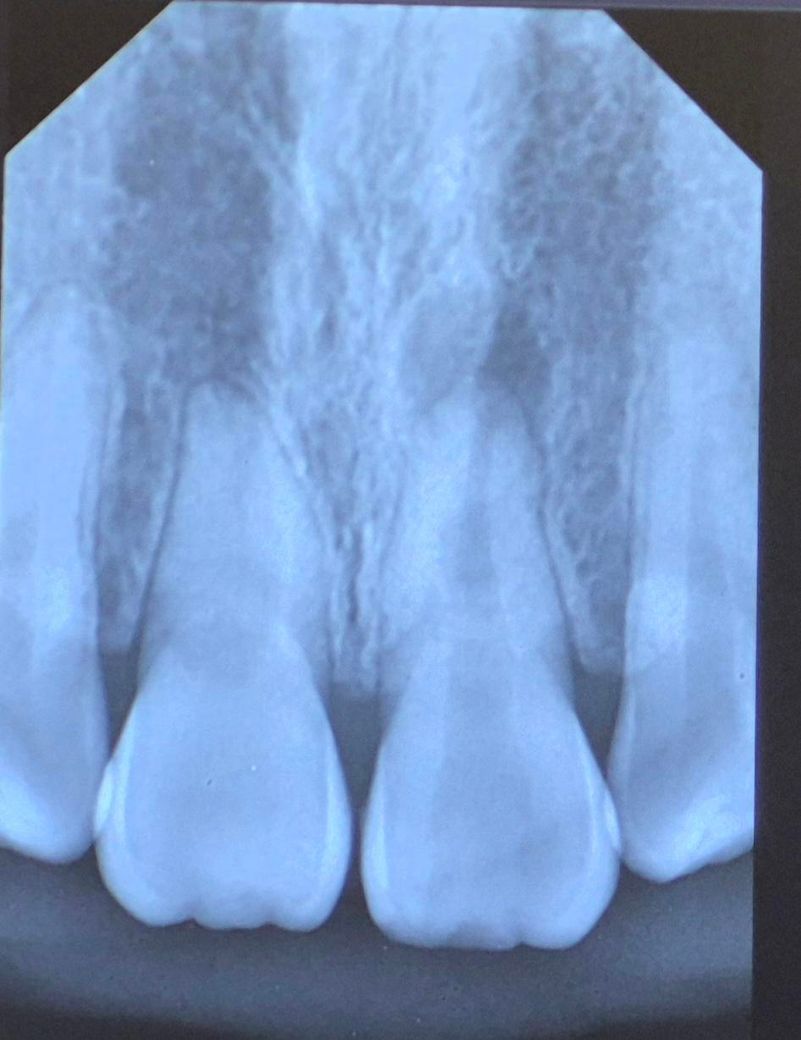 오른쪽 위 앞니의 뿌리 끝 염증이 잡혀있는게 보입니다 저건 꼭 외상 때문이었다기보단 예전부터 치근단염증이 잡혀있었을것 같습니다 단기간내에 생기진 않아요