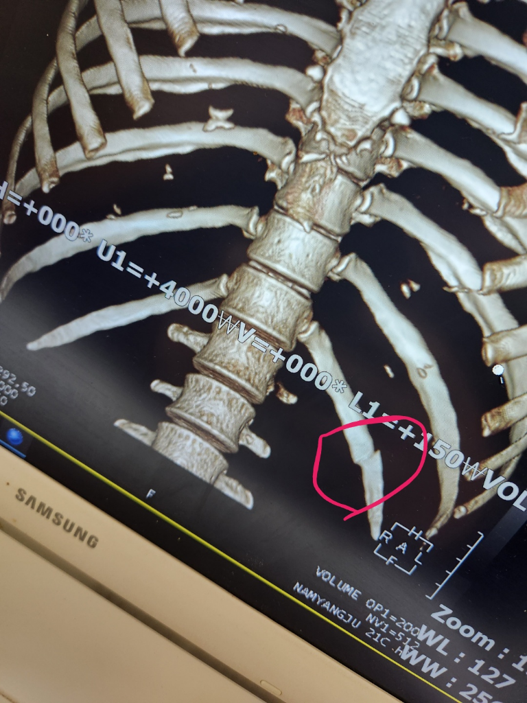 최근 교통사고로 인해 좌측 12번 늑골에 골절 발생하였는데요