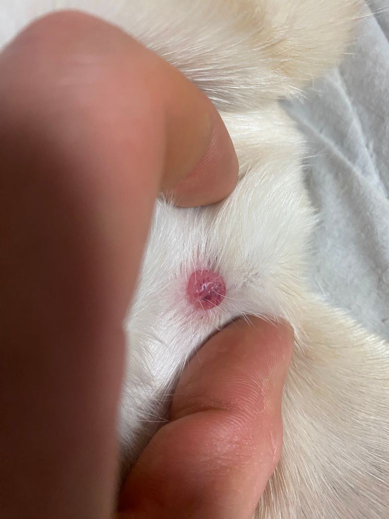 일주일전 왼쪽 앞다리 겨드랑이쪽 털이 빠져있어 확인해보니 1cm 정도 되는 혹이 있었습니다. 일주일 후인 오늘 확인해보니 혹이 팽팽하게 되어있고 피가 고여있는거처럼 보여 살짝 누르니 피가 나왔습니다.