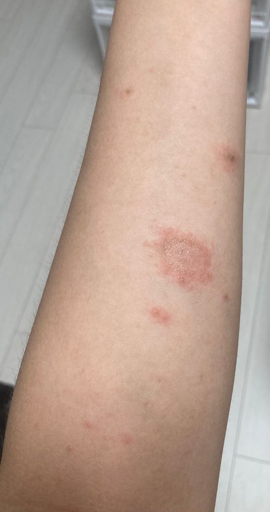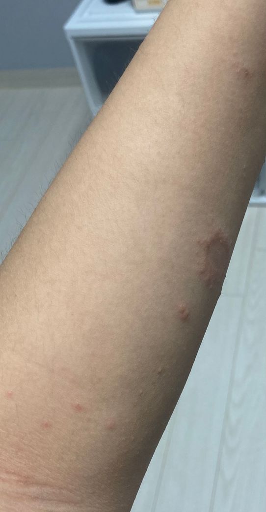 처음에 벌레물린거라 생각했던게 막 융기되면서 커지더니 가라앉는거 같았어요. 근데 다시 수포발진?이 생겼고 옆으로 퍼지는거 같아요ㅠ 그리고 이걸 시작으로 주변에 아주 작은 투명한 구진인지 알갱이 같은게 생겼는데 특징이 그 가운데 작은 갈색 점같은게 있더라고요. 근데 이게 시간이 지날수록 처음 생겼던거와 비슷하게 그 점이 딱지가 되고 주변은 발진하는 형태가 돼요… 그리고 지금은 팔 앞뒤로 여러 구진도 많이 나고 붉은반점이며 다리에도(허벅지 옆,안, 뒷쪽 등등) 많이 생겼어요ㅠ 가려움은 거의 없고 가려워도 처음생긴곳만 가렵네요..