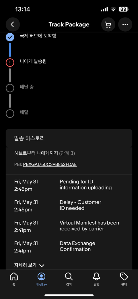 트래킹을 확인해보니 갑자기 신분증이 필요하다고 하네요