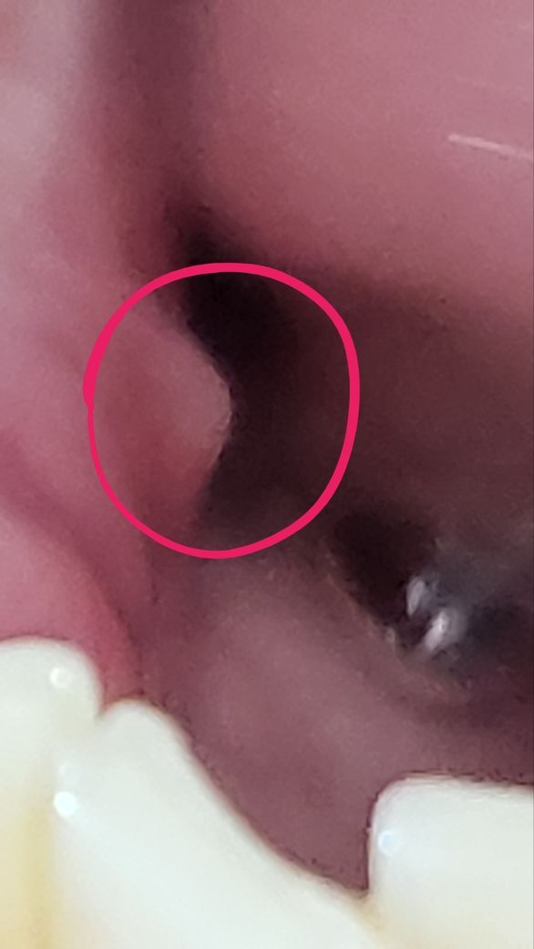 안쪽 잇몸 오른쪽에만 딱딱한 돌기가 튀어나와있습니다.